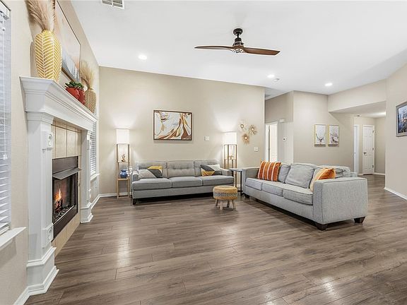 Ideal for outdoor entertainingCozy fireplaceTall ceilingsExtended covered back patio