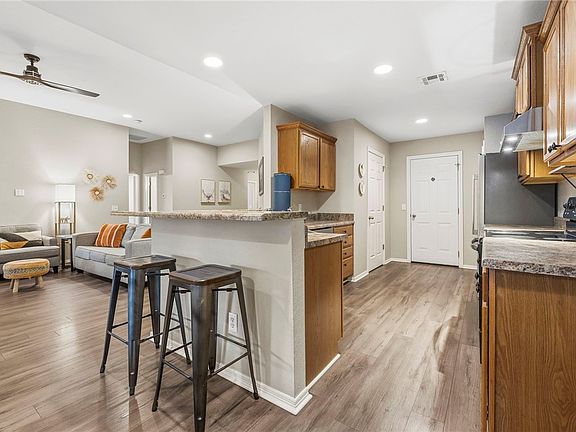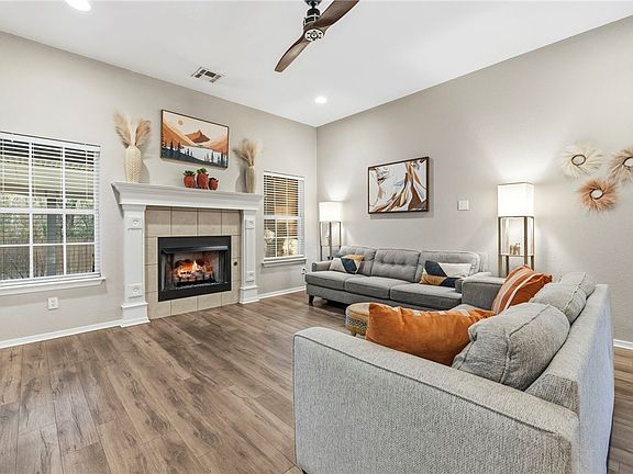 Perfectly situated within 2 blocks to Osage Park and minutes from Thaden Field, Lake Bentonville, bike trails, and local amenities, this inviting and charming home is move-in ready. The spacious living area features tall ceilings and a cozy fireplace that creates a warm, welcoming atmosphere. The kitchen and dining spaces flow seamlessly to the extended covered back patio which is ideal for outdoor entertaining or peaceful evenings. Behind the home a wooded common area provides added privacy. Recent upgrades include a new HVAC system and new flooring throughout, not including the bathrooms. Whether you’re searching for a primary residence or a great investment property, this home offers low-maintenance living in one of Bentonville’s most desirable locations.