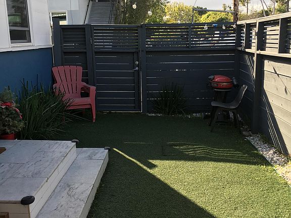 This duplex front unit is secured with a 6' tall privacy gate which opens up to a spacious yard with turf and a seating area. Steps to famous Abbott Kinney Blvd, this centrally located 2 bedroom duplex is also a short walk to the beach, Venice Canals, Venice Pier, and plenty of parks, bars and restaurants.
