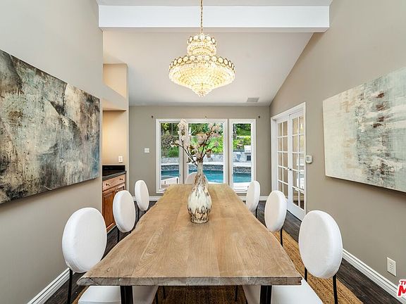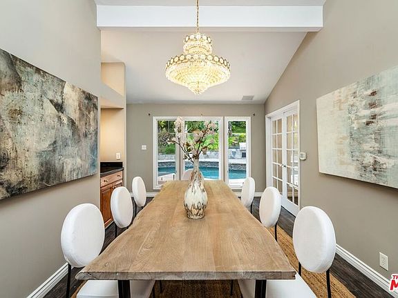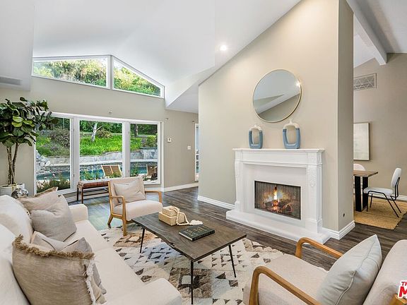Presenting an expansive 6BD/4.5BA residence nestled on a generous 14,204 sqft lot in a highly sought-after location South of the Blvd in Encino. Upon entering through the double doors, be embraced by lofty ceilings and abundant natural light. The inviting living room boasts a fireplace and a vast bay window overlooking the backyard oasis. It also flows seamlessly into the formal dining room, then into the eat-in kitchen equipped with top-of-the-line SubZero refrigerator, Viking stove, dual sinks, ample cabinetry, and a spacious walk-in pantry. Just steps from the kitchen is a cozy breakfast nook with a fireplace leading into the family room, featuring a built-in entertainment system and wet bar. On the lower level, discover three ensuite bedrooms, including the first primary suite with direct backyard access, a custom walk-in closet, and a luxurious spa-like bath. A powder room and laundry room complete this level. Upstairs awaits the secondary primary suite boasting soaring vaulted ceilings, a fireplace, a custom walk-in closet, and a lavish spa-like bath with double vanities, tub, and shower. An additional large bedroom plus a nursery/office which can be accessed through the primary suite round out the upper level. Surrounded by lush landscaping, the entertainer's backyard has a pool with cascading waterfall, spa, built-in barbecue, multiple can be access through the seating areas and plenty of space for friends and family to gather. Additionally the home is equipped with a value-enhancing and money-saving solar energy system. Situated within the esteemed Nestle Ave Elementary school district and mere minutes from Ventura Blvd's shopping and dining options, with easy access to the Westside. Don't miss the opportunity to make it yours and live the lifestyle you've always dreamed of.