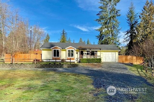 {Charming Rambler on Acreage}Long & private driveway leads to adorable 2 bedroom w/additional bonus room (used as a 3rd room/office/den w/2 full baths. Craftsman style on shy 2 acres in park like setting. Active Salmon spawning creek on property is sure to please w/bridge & trails. Large covered back deck for entertaining, relaxing, or? 12x16 shed for storage w/riding mower carport. Fenced yard, garden space & RV parking. No HOA! From the moment you enter the house, it feels like home (cozy & comfortable). Offering open concept living space, the kitchen has beautiful granite countertops, knotty alder cabinetry w/self closing hinges & breakfast nook. Master suite has adjacent master bath. Both bathrooms have been updated. Don't miss out!