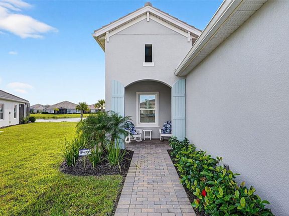Better-Than-New Villa: Designer Upgrades, Smart Features, and Prime Cul-de-Sac Location! This one-year-old, 2 Bedroom, 2 Bath Villa with Den/Office and 2-Car Garage in the sought-after Wysteria community of Wellen Park is a standout opportunity: the final touches and premium upgrades you will not find in new construction have been added, so this one is ready for you to start living your own Florida Dream. Built by the reputable Neal Communities, this open-concept Tidewater B floorplan is situated on a tranquil cul-de-sac with serene lake views, offering minimal traffic and maximum tranquility. Unrivaled Upgrades & Ultimate Convenience: Essential Florida protection is covered with whole-house impact-resistant glass windows and a reinforced garage door, a major investment in safety and insulation. Forget carpet; the entire home features premium Wood-Look Tile flooring throughout, a modern aesthetic that's easy to maintain. High-end finishes continue with 8-foot interior doors and a tray ceiling with crown molding in the main living space. The current owner has thoughtfully executed many high-value enhancements, making this villa truly move-in ready. Windows are finished with Plantation Shutters, adding significant value, light control and timeless style. The HVAC system has an installed UV light to sterilize the air and improve system efficiency. A 50 AMP electrical switch and quick-release gas connector have been installed, allowing for a seamless, whole-house generator connection if desired. All light fixtures have been upgraded, including five premium ceiling fans and three additional designer lights over the dining area and kitchen island. The Den has been enhanced with glass doors, and the laundry room features newly installed cabinets and a counter for maximum utility. (Full list of upgrades available.) The stunning kitchen is finished with Quartz countertops and includes the highly desired Slide-in Gas Range within the Stainless Steel appliance package. The space is completed with custom features like pull-out pot drawers and LED under-cabinet lighting with dimmer switches. The open floorplan flows perfectly to the exterior with an upgraded pocket sliding glass door fully opening to the extended, caged lanai, overlooking the picturesque lake, making the most of the Florida indoor-outdoor living experience. The Wysteria community provides true carefree living, with the HOA covering lawn, landscape, irrigation, cable, and internet. Residents enjoy an amenity center with community pool, spa, and pickleball courts. Wysteria is centrally located in the heart of Wellen Park, just minutes from Downtown Wellen, a vibrant social hub centered around the 80-acre Grand Lake with 2.8 miles of pedestrian paths. Enjoy upscale dining, boutique shopping, a waterfront splash pad, Solis Hall and lawn for concerts and entertainment. CoolToday Park, the nearby Spring Training home of the Atlanta Braves, hosts year-round events, concerts, and dining the Tomahawk Tiki Bar & Grill. Publix Plaza and Costco Warehouse are conveniently nearby, with schools and future medical facilities currently under construction. With only a few villas remaining in Wysteria, this is a rare opportunity to purchase a better-than-new home where every major upgrade already completed. Don't miss the chance to own the premier villa in the community. Schedule your private showing soon and see this exceptional home for yourself.