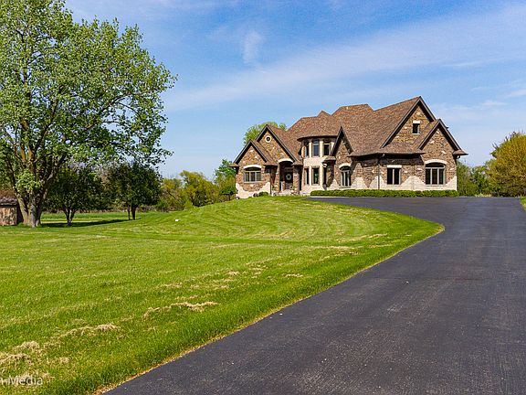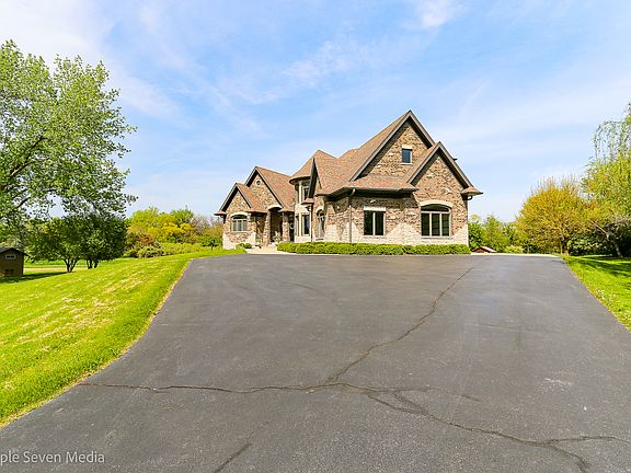 Exclusive 2-Story Custom Built Home on a 5-acre lot! Great Price! Great Location! Over 6900 combined square feet. This beautiful property features the following: a foyer leading to a large dining area and an open concept main living room with a fireplace adjoining a breakfast room and kitchen. Full custom kitchen, solid cabinets, granite countertops, stainless steel backsplash, stainless steel appliances, and a walk-in pantry. The main floor includes a laundry room, guest bathroom, and master bedroom with a large walk-in closet, a full bathroom with a walk-in shower, a large built-in tub, and his and hers sink. The second floor includes a loft overviewing the living room, four large bedrooms, three full bathrooms, three large walk-in closets, and extra storage closets throughout. Unfinished attic with endless possibilities for storage or possible dormer addition. Full unfinished walk-out and look-out basement with roughed-in fireplace, half a bath, utility room, and a recreational space leading to a paved patio underneath a maintenance-free deck. Hardwood floors and ceramic tile throughout. All tiled floors are heated and controlled separately. Central vacuum system. Zoned HVAC system. Vaulted and trayed ceilings look stunning with plenty of recessed lighting. Attached three car garage with epoxy floors, basement access and plenty of space. Minutes from dining, shopping, public transportation, and interstate access.