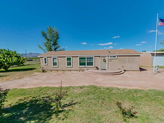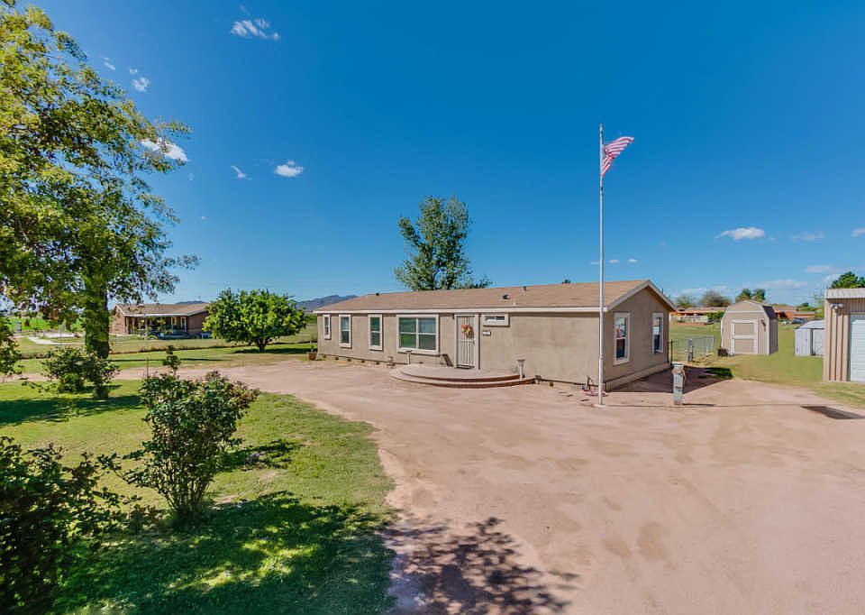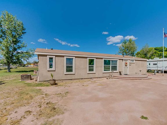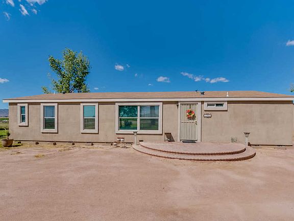 Terrific opportunity for a well-cared for affixed manufactured home sitting on 1.13 acres of flat land. No HOA! Abundant space inside and out. Block foundation. Kitchen remodeled in 2013 and features slow close drawers and pull outs w/ cabinets from floor to ceiling. Bathroom faucets updated in 2013. Laminate flooring added in 2013. Water heater replaced in 2012. HVAC is serviced annually. Walk-in closet in bed 2. Extended length and extended height garage w/ built in cabinets and shelving and room for a work shop. Well shared by 9 homes. Each contributes $35/mthly to fund covering updates and maintenance. Pump was just replaced in March. HUGE backyard offering mature citrus tree and a canvas for your personalization - Build that outdoor BBQ you've always wanted! Enjoy the Mountain Views!