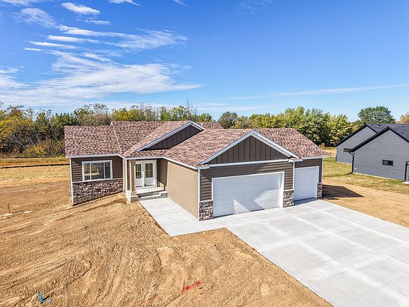 Welcome to this beautifully designed 4-bedroom, 3-bathroom rambler nestled on a gorgeous 1+ acre lot in the highly sought-after Komet Acres subdivision. Built with expert craftsmanship by a reputable local builder, this new construction home offers modern comfort, thoughtful design, and peace of mind with full builder warranties included. Step inside to discover a spacious, light-filled open-concept layout that blends function and style. The gourmet kitchen is a showstopper, featuring high-end cabinetry, quartz countertops, quality appliances, a massive walk-in pantry, and an ideal flow for both entertaining and everyday living. Retreat to the luxurious owner’s suite, complete with a huge walk-in closet and a private en-suite bath featuring double vanities and a custom-tiled walk-in shower. The fully finished lower level expands your living space with a beautiful custom fireplace, two additional bedrooms, a full bath, and plenty of room to relax or host guests. Additional highlights include: • Front LP SmartSide® siding with attractive brick accents for lasting curb appeal • Main floor laundry for everyday convenience • Abundant storage throughout the home • Oversized 3-stall garage (909 sq ft)—ideal for hobbies, vehicles, and extra storage • Country-like setting offering privacy, space, and peaceful views This is a rare opportunity to enjoy the peace and space of country living on a beautiful, oversized lot while still being just minutes from schools, parks, and everyday conveniences. Thoughtfully built with lasting quality, this is a home you’ll love for years to come!