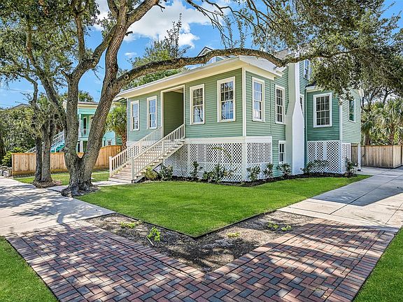 A TOTAL MUST-SEE GALVESTON SHOWSTOPPER-ROOM FOR A POOL! This beautifully reimagined home blends ISLAND CHARM with HIGH-END UPGRADES inside and out. Step into a bright open layout featuring a FIREPLACE, expansive 10 ft. KITCHEN ISLAND, QUARTZ COUNTERTOPS, WINE FRIDGE, POT FILLER, and sleek floor-to-ceiling cabinetry and a 48-INCH RANGE with DOUBLE CONVECTION OVENS, a true chef’s dream! Enjoy THREE ENSUITE BEDROOMS on the main level and two upstairs. The beautiful PRIMARY SUITE is an owner's dream with DUAL VANITIES, FREESTANDING TUB, and a massive custom shower. Original hardwood floors preserve timeless character, while updated HVAC, electrical, plumbing, roof, and fencing offer peace of mind. Downstairs features a FINISHED 2-BEDROOM APARTMENT with full kitchen and bath—perfect for GUESTS, INCOME, or MULTI-GENERATIONAL LIVING. Bonus room with half bath is ideal for a FUTURE POOL HOUSE. All just minutes from the BEACH, PLEASURE PIER, and Galveston’s vibrant attractions!