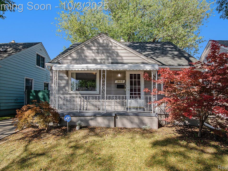 Walk to Downtown Ferndale from this Darling bungalow featuring a spacious primary suite and finished basement. Tiled entry opens to a bright living room with hardwood floors and classic coved ceilings. The eat-in kitchen offers stainless steel appliances, a tile backsplash, and convenient access to the basement and driveway. Two comfortable bedrooms and an updated bathroom are located on the main level, including one with sliding doors leading to the back deck. The large primary bedroom upstairs includes a walk-in closet. The finished basement provides additional living space with a second full bath, laundry area, and room for entertaining. Enjoy a private backyard with a deck or chat up your neighbors from the covered front porch. Additional features: New HVAC system, sump pump, and refrigerator all in 2024. 1-car garage. This property falls within the Promise Zone, which provides resident graduates of Hazel Park High School with a tuition-free path to an Associate's Degree and other postsecondary education. Clean and ready for you to move right in!