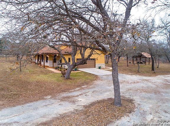 Located on 3 Acres; This beautiful home features; Granite Counter Tops in the Kitchen, Open Floor Plan, Trey Ceilings in Master with outside access, large master garden tub w/separate shower, wood laminate and tile flooring. Large front porch the full length of the house, and covered back patio with country views of the Greenbelt behind the property, as well as a large pavilion. Good fencing around the entire property and gated entry. New HVAC (A/C & Heat) has just been installed