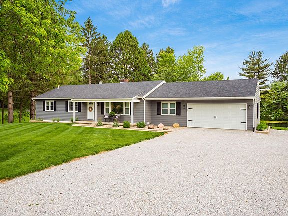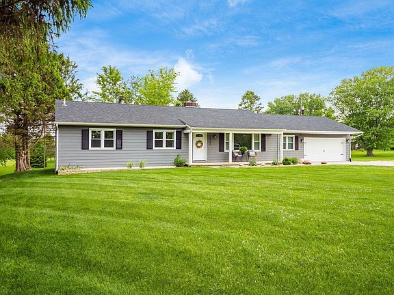 WELCOME HOME!! LOVELY RANCH HOME ON 2.1 ACRES!! 3 BEDROOMS, 1 BATH, UPDATED THROUGHOUT!! KITCHEN BOASTS WHITE CABINETS, STAINLESS STEEL APPLIANCES, GRANITE COUNTERTOP, TILED BACKSPLASH, BAR SEATING & LAMINATE FLOORING, DINING ROOM, WOOD BURNING FIREPLACE W/RUSTIC MANTEL, LIVINGROOM, CEILING FANS, LL LAUNDRY ROOM W/WASH TUB, SPACIOUS CONCRETE PATIO, HUGE PRIVATE BACKYARD, POND, MATURE TREES, OVERSIZED TWO CAR GARAGE W/OPENER, FULL BASEMENT, THIS HOME IS A MUST SEE!!