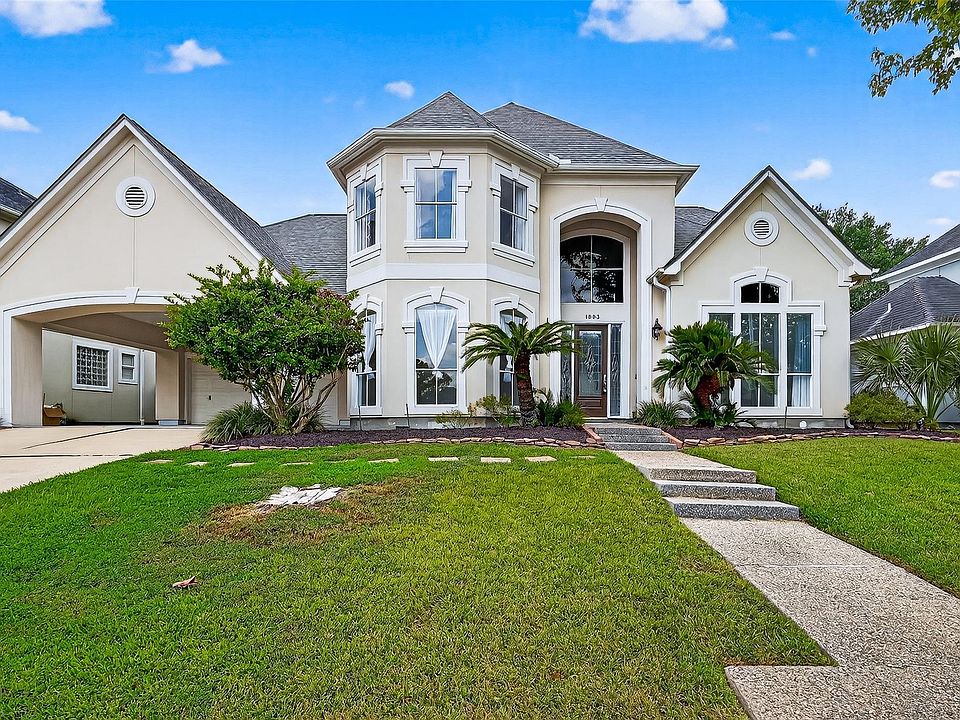 Gorgeous custom home located in a gated lake community with 24 hours guard. All bathroom updated, all floors no carpet. 2 car portecochere,tons of cabinet in big kitchen, double oven, all SS appliances, W/D/R stays, bath rooms with frameless shower, lots of upgrades, two wet bars, wine cooler, plenty of storage space, great location walk to lake, community center, swimming pool and tennis court, super clean, ready to move-in!!