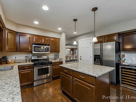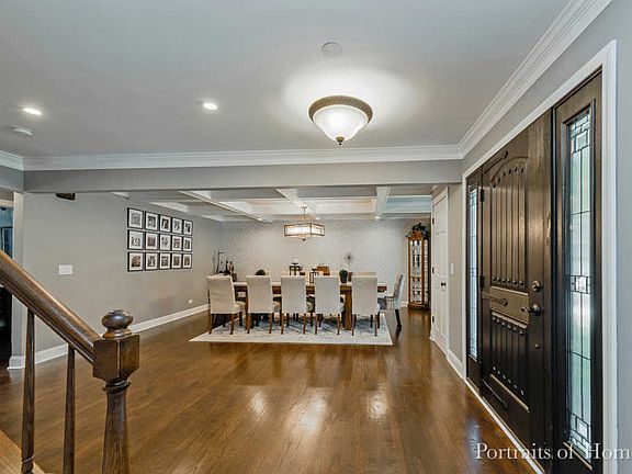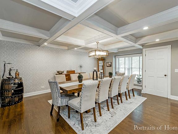 Beautifully updated home situated on quiet cul-de-sac, mins away from Ranch View Elementary School! Gleaming hrdwd flrs throughout entire 1st flr, custom dining rm feat. gorgeous coffered ceiling & chandelier. Completely updated kitchen w/granite countertops, SS appliances, recessed lighting, center island w/breakfast bar & adjacent eating area w/access through sliding glass doors to the backyard. Spacious family rm w/vaulted wood beam ceiling, floor-to-ceiling brick fireplace, ceiling fan w/light & large bay window. 1st flr office & a play rm. 2nd floor comes complete w/4 spacious bdrms- all offering large closets & a ceiling fan w/light. Master bedrm w/private full bath, WIC & additional 2nd office space w/vaulted wood beam ceiling. Screened in porch overlooks backyard & patio. 1st flr laundry, NEWER ('12) roof, windows, siding, NEW ('18) front door, back sliding door & garage door, NEW ('17) water heater. Fenced yard, redwood playset included! Award winning Naperville SD 203.