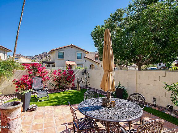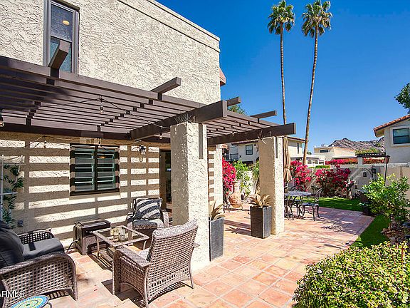 Nestled in a true Resort setting, The Pointe at the Peak townhomes offer classic park-like community scenery w/access to resort pools & discounted amenities. Popular Southern orientation provides an abundance of natural light in this open greatroom Villa. Boasting one of the largest private & sunny patios in the neighborhood w/Saltillo tile, Pergola covered patio, new turf & lush colorful vegetation, ideal for outdoor living & entertaining w/its excellent Mountain Views. 2 bed/1.5 bath features remodeling & upgrades throughout. Kitchen features hardwood refinished cabinetry & hardware, new quartz & soapstone slab counters, large sink & pantry, stainless-steel appl. & breakfast bar. Newer LowE windows, new Plantation Shutters, baseboards & six panel doors throughout & new water heater New carpet at the base of stairs. Primary retreat enjoys 2 closets. Community pool and incredible view deck overlooking the Phoenix Mountain Preserve and Piestewa Peak is conveniently located next door. Close walk to miles of hiking, walking and biking trails throughout the Piestewa Peak/Phoenix Mountain Preserve. Two nearby parks and close to the 51 Freeway, world-class restaurants, shopping and golf. Also conveniently located minutes from Sky Harbor Airport.