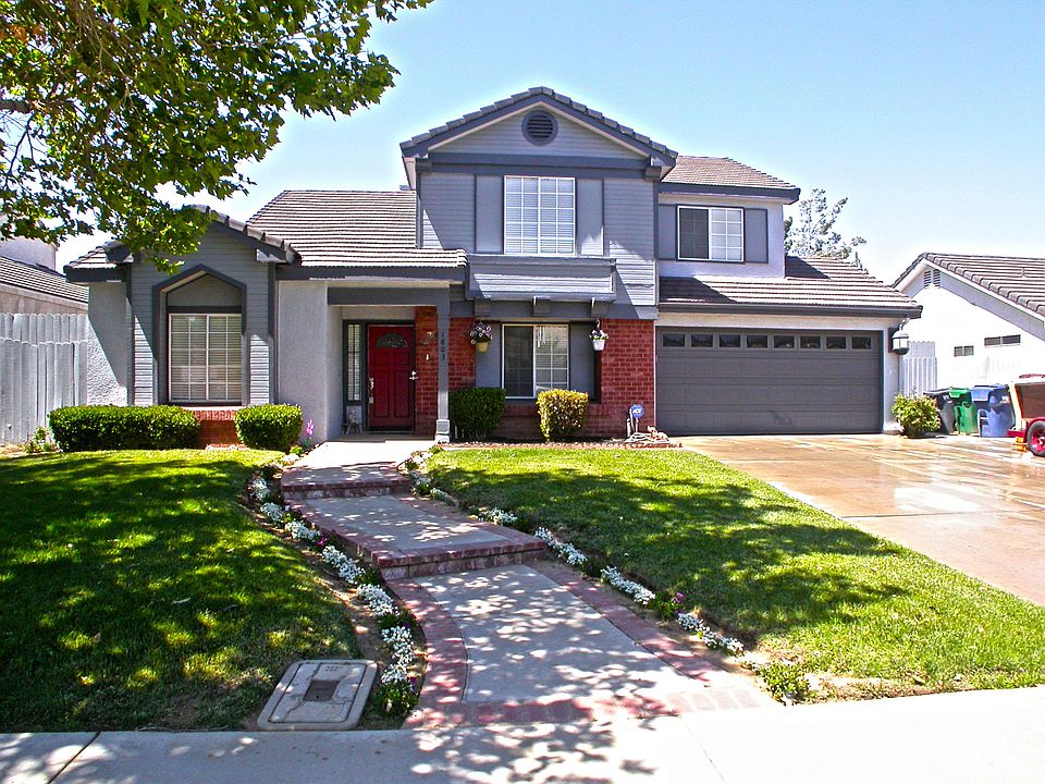 Wow! Come see this move-in ready pool home on the West side! Enter home into the living room with vaulted ceilings exposing the second story showing off the wood railing staircase. Updated kitchen with bar seating and stainless-steel appliances. Lower level includes family room with fireplace, formal dining room, laundry room, guest bath, and a large game room addition! Upgraded bamboo flooring and tile throughout. All bathrooms have been refreshed with updated vanities. Master bedroom has high ceilings, walk-in closet and master bath with oversized tub, custom tiled shower stall with river rock floor & custom dual vanity with granite. Home also boasts, finished two car garage with automatic roll-up door and direct access to the home. Entertain many guests in the good-sized rear yard with covered patio area, firepit, mounted swivel TV and have fun in the pool with the waterslide! Enjoy the convenience of close proximity to schools, parks, the mall, shops, the 14 freeway and much more!