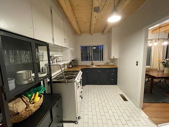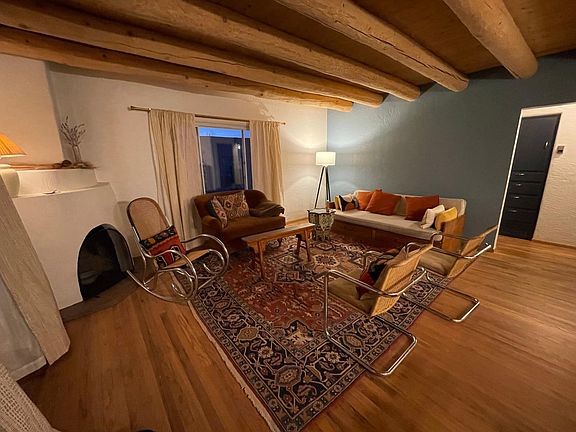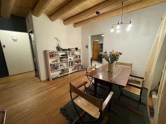 This corner lot Casa Alegre home is filled with Stamm originals plus a freshly painted interior, updated kitchen and bathroom and brand new, well-insulated roof. This cozy home has large bedroom and hall closets, exposed vigas and original hardwood floors throughout. Huge lot features 5000+ square feet of front yard with a retaining wall, dedicated side yard ready for a seasonal garden bed, and enclosed backyard with landscaping and fruit trees throughout. A spacious, enclosed patio connects the backyard to a shared workshop with a workbench, ample storage space and washer and dryer. The surrounding neighborhood is filled with friendly, longtime residents and homeowners and is situated within walking distance of Frenchy's Field as well as The Pantry, Madame Matisse, Los Potrillos, Iconik Coffee Roasters, Jambo Cafe, and Bread Shop. Tender Fire Kitchen crafts delicious pizza from El Rey Court's courtyard Thursdays through Saturdays. Smith's Grocery, Natural Grocer, Trader Joe's and Whole Foods are all within approx. 5-minute radius. The property owner lives on-site in an adjacent in-law unit and is quiet, attentive and responsive. Small pets will be considered. Six or 12 month lease terms available. Wifi paid for by owner already in place. Renters pay for 1/2 of electricity and gas. The owner covers landscaping.