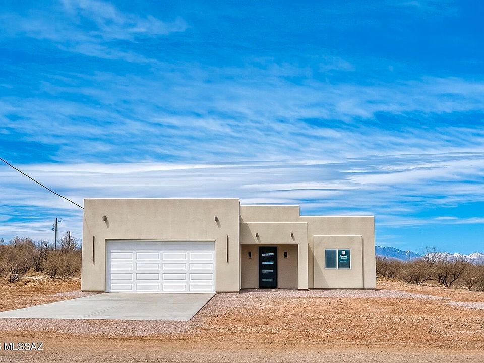 Welcome to this stunning Santa Fe-style masterpiece, where modern elegance meets timeless Southwestern charm. From the moment you step through the grand custom-built entrance door, you're welcomed by soaring 12-foot ceilings that create an airy, open feel throughout the home.The open-concept design seamlessly blends living, dining, and kitchen spaces, perfect for both entertaining and everyday living. The kitchen is a true showpiece, featuring high-end finishes, custom cabinetry, and expansive countertops, all designed to complement the home's unique architectural style.Each of the three bathrooms is a work of art, boasting one-of-a-kind floating vanities that add both functionality and aesthetic appeal. The luxurious primary suite offers a spa-like retreat.
