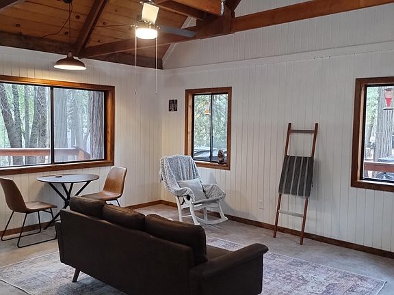 Welcome to your private getaway located in the Giant Sequoia National Monument! This delightful cabin combines rustic charm with modern updates to give you the best of both worlds. Step inside to the great room with a vaulted and beamed knotty pine ceiling and a rock fireplace with wood burning insert. Just past the updated kitchen is a bedroom and bath. Upstairs is a sleeping loft with an outside entry/stairs to the large back deck. For extra storage or hobbies, there is an oversized (16x20) completely finished shed just steps from the front door that could function as a family room, man cave, she shed, or other useful area in addition to a storage shed, workshop, or toy garage. The outdoor space has something for everyone - a large back deck for BBQing or enjoying your morning coffee gazing at the forest, a horseshoe pit, an archery area, and a firepit area for s'mores and evening gatherings under the stairs. With trails to Giant Sequoias nearby, this is a nature lover's paradise and won't last long - call today!