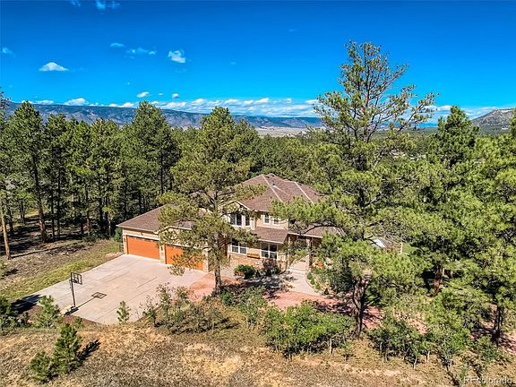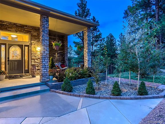 Exquisite custom home reminiscent of a traditional mountain estate, located on a pristine 2.3-acre lot in Sterling Pointe, with mountain and meadow views from every room! This truly is a home designed for comfort and relaxation, offering a feeling of peaceful solitude that can be soaked up from the west-facing deck or the covered, all-seasons patio. The expansive floor plan boasts 5 beds, 5 baths, incredible outdoor living space, and a finished walk-out basement! As you enter, an impressive foyer welcomes you with soaring ceiling height, windows galore, and new expansive flooring. The open-concept style living on the main floor consists of a remodeled Chef’s gourmet kitchen with a large center island, counter seating, full accompaniment of stainless appliances, expanded cabinetry, slab granite countertops, and an expansive pantry. The kitchen opens to the magnificent outdoor living area, a wet bar, eating area, and the cozy family and living rooms. The main floor is complete with a bedroom or office, dining room, remodeled powder room, laundry room with utility sink, and tons of cabinetry. Retreat to the upper level where you will find an extensive loft area that overlooks the downstairs, a peaceful primary suite with access to an outdoor deck with incredible views of Dawson Butte and the Front Range, and en-suite remodeled bathroom with a free-standing tub, tiled shower, and a huge walk-in closet. The upper-level finishes with two additional bedrooms, each with an adjoining full bath. The finished walk-out basement offers a game/media room, bar, exercise area, spacious bedroom, full bathroom, and a large storage room. Finished 4-car garage! Beautiful landscape, trees, built-in sledding hill, wild raspberries, and a greenhouse! Enjoy this serene mountain oasis while being only 15 minutes from Castle Rock, 10 minutes from I-25, minutes from Bear Dance Golf Course, and local shopping and dining. Move into this mountain retreat and start making memories!