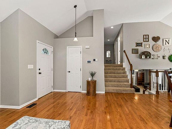 Welcome to this 3-bedroom, 2.1-bathroom home in Barry Woods, featuring an atrium split floor plan and a 3-car garage. Step inside to the living room with vaulted ceilings, hardwood floors, and abundant natural light. The space flows into the eat-in kitchen, complete with a breakfast bar, newer stainless steel appliances, pantry, and access to the back deck overlooking the spacious, shady backyard. Upstairs, the primary suite offers a tray ceiling, walk-in closet, and ensuite bath with updated LVP flooring and a relaxing jacuzzi tub. Two additional bedrooms and an updated main bath with LVP flooring complete this level, along with the convenience of laundry just steps away. The lower level includes a stylish half bath with a shiplap accent wall, a finished walkout basement with a cozy fireplace, and access to a patio. An unfinished sub-basement provides excellent storage or storm shelter space. Recent updates include a new roof in 2021, new HVAC system in 2022 with transferable warranty, new interior paint, and upgraded stainless steel appliances, offering peace of mind and modern comfort. With great highway access and close proximity to trails, parks, and shopping, this home blends style, convenience, and functionality.