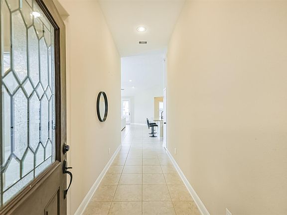 Welcome to this open-concept layout with tile flooring throughout. Large windows that bring in natural light and you won't want to miss the fountain view from your dining room window. The kitchen has white cabinetry, granite countertops, tile backsplash, and a large island that allows for cooking with the family or entertaining. Washer, dryer, and refrigerator are included. The primary suite has an oversized shower, double vanities, and a walk-in closet. Enjoy outdoor living on the covered patio great for relaxing or hosting.