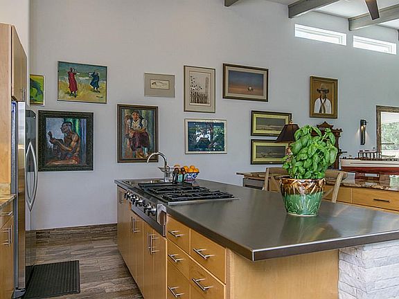 Contemporary elegance on 2.3 Guadalupe river front acres. This is a nature lover's dream and an entertainer's delight. Travertine flooring through out, granite and marble counter tops, high ceilings, courtyard entry, double island kitchen and top of the line appliances are only a few of the special features. Gallery design with adjustable lighting and accent cabinet to display art and collectables in style. Floor to ceiling wall of windows to enjoy the trees and wildlife.