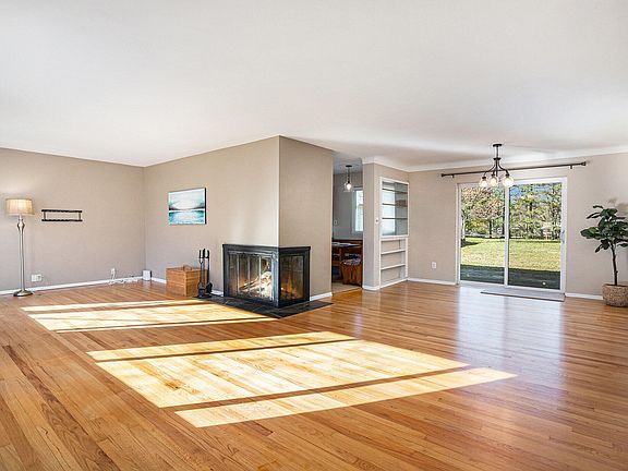 Move in before the New Year! This charming Ranch features gleaming hardwood floors and delightful midcentury touches that give the home character. Enter to find a striking two-sided wood-burning fireplace, the perfect focal point of the living area. Two large picture windows fill the living room with natural sunlight, creating a warm and inviting space.