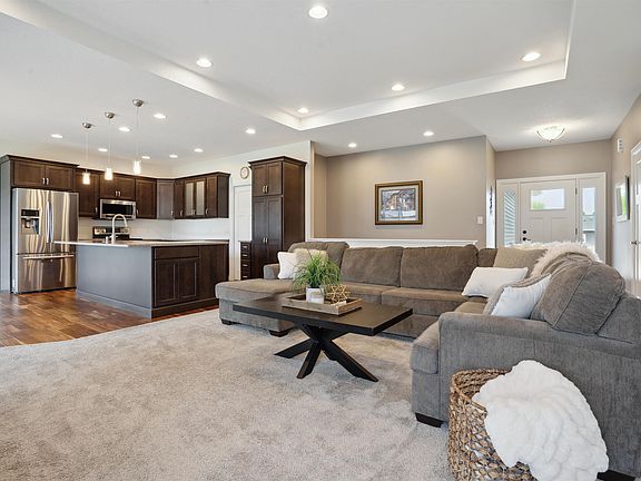 Better than new! Offering a brand new covered Trex deck and fenced in backyard along with a new lower level bathroom, this meticulously maintained four bedroom, three bathroom home is a must see! Stepping inside you'll find the living room boasts a stone fireplace and specialty ceilings. With an open concept layout, the living room flows seamlessly into the kitchen and dining area. The kitchen features stainless appliances, quartz countertops, and a fantastic center island overlooking the dining area with sliding door access to the new covered Trex deck. The main floor also includes three great sized bedrooms including the primary suite. The primary suite features a walk-in closet and a private en suite with dual vanities and a tiled walk-in shower. The main floor is complete with an additional full bathroom and laundry room. The lower level boasts even more living space, a workout room, a fourth bedroom and newly added third bathroom with a walk-in shower with a glass door. Exterior amenities include an attached three stall garage, newly fenced in backyard, and a new covered Trex deck that takes you to the patio. This great home is one you won't want to miss! Schedule a showing today!