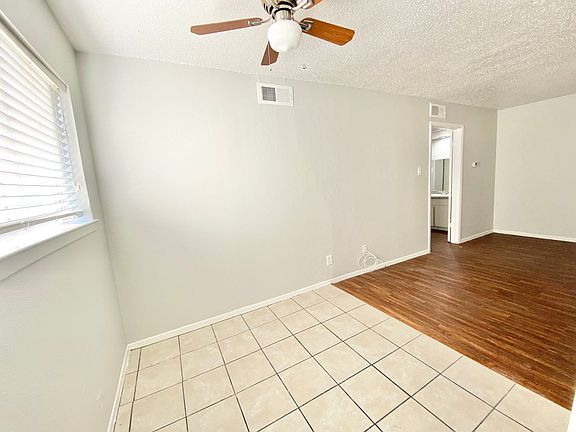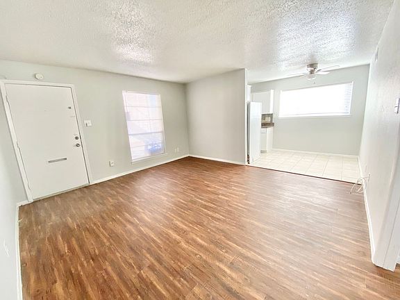 One bedroom one bath ground floor apartment. Plenty of natural light and open floorplan. Large living room is open to dining off the kitchen. Refrigerator included. Bedroom has three closets and bathroom has two storage cabinets. Tile and vinyl flooring-no carpet! One assigned carport spot. Water is included in rent. Close to highways and shopping!