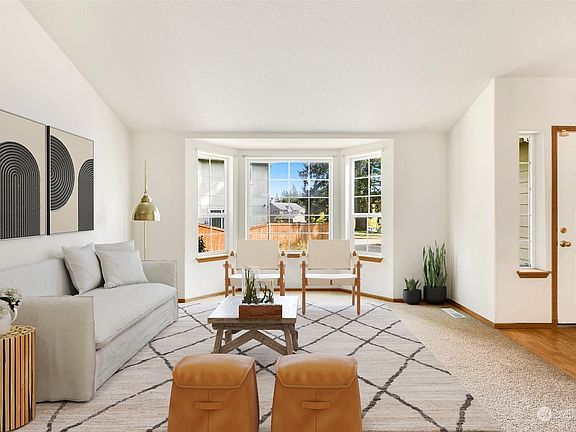 Light & bright Maple Village home, ready for new owners! The main floor boasts a light & bright open layout with soaring ceilings, living room with bay window, family room with cozy gas fireplace, sunny dining room, half bath, & laundry. Spacious kitchen with breakfast bar, ample cabinet/counter space, lovely laminate hardwood flooring, and large walk-in pantry. Head upstairs to 4 good sized bedrooms, including the expansive primary suite with walk in closet and 5-piece en suite with soaker tub. 2-car attached garage, low maintenance private backyard with patio, and conveniently set in a prime location near I-5, medical facilities, schools, parks, dining, shops, & more. Welcome Home!