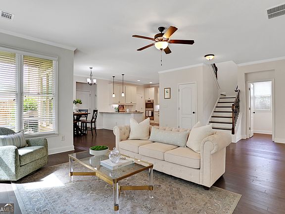 Welcome to this stunning craftsman-style home with charming curb appeal. From the inviting front porch to the beautifully manicured lawn, this home is designed to impress. Inside, you'll find spacious living areas filled with natural light, modern finishes, and thoughtful details throughout. Perfect for both everyday living and entertaining, this home combines comfort, style, and convenience in one ideal package. The open floor plan welcomes you to the generous main level that seamlessly blends the dining room, living room, and great room. The kitchen is a culinary delight with ample counter space, breakfast bar, and pantry. Once upstairs, the oversized primary suite is a true retreat, featuring a cozy sitting area and a private balcony to enjoy your morning coffee or unwind at sunset. The second floor also boasts a loft/media room (which could be converted to a 4th bedroom), laundry, and 2 additional bedrooms. Home has rear entry garage as well as a fenced yard for added privacy. This home not only offers comfort inside, but also outside--located just miles away from both The Walker School and Mt. Paran Christian School, as well as Town Center Mall, Kennesaw Mountain, and Marietta Square. Nestled in sought-after Barrett Heights, this home is sure to impress even the most discerning buyer.