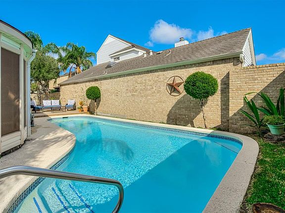 Kustom Kastle Patio home in the popular University Green community. Open concept, high ceilings, crown molding, stone fireplace, formal dining, plantation shutters, kitchen has plenty of counter and cabinet space, updated appliances (2019), breakfast area with a view of the pool and wall of windows, decking, updated primary bathroom, updated secondary bathroom with/a skylight, community park and pool, conveniently located to local amenities, restaurants, shopping, CCISD