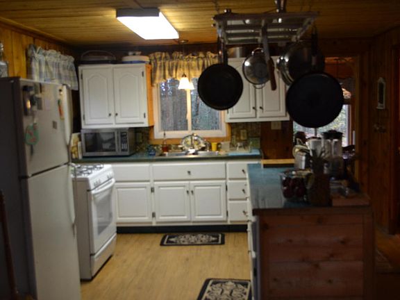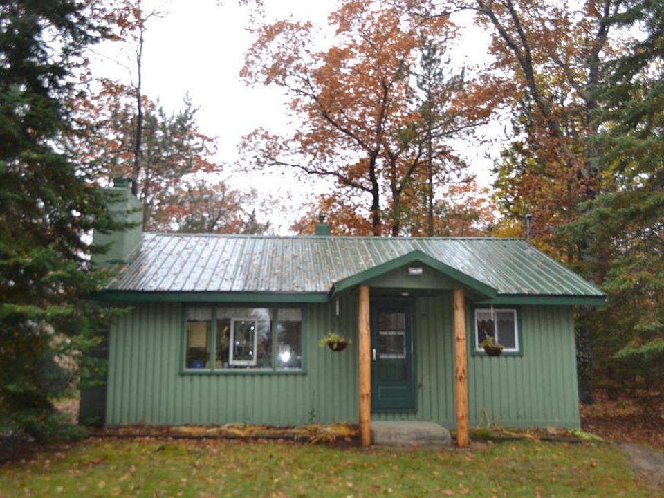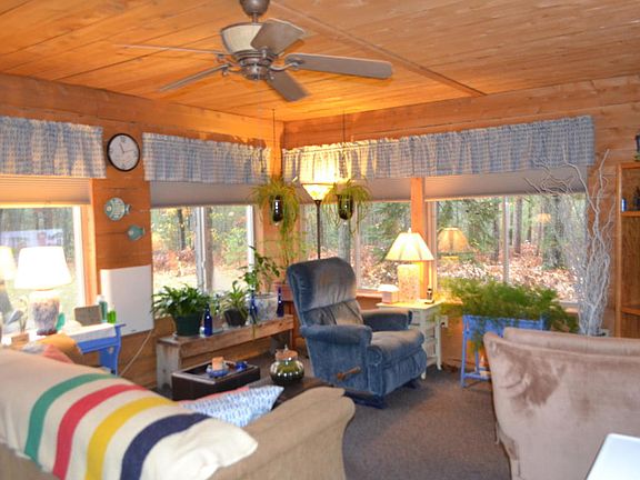 Newly painted, vertical log 2 bedroom cabin in the woods with beautiful natural gas or wood burning stone fireplace. Bathroom completely remodeled & is finished cedar. Newer features include windows, doors, thermal blinds, whole house smoke & carbon monoxide detectors, water filer system & water heater. Extra insulation was added to the existing cabin when the metal roof was installed, which includes a roof heating cable. 24x40 insulated & heated pole barn with stainless chimney & concrete slab includes garage door openers, underground electric, cable & phone. 8x8 greenhouse & fenced garden