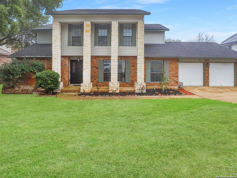 Discover the charm of 18031 Green Knoll! Nestled in the heart of the coveted Stone Oak community, this stunning two-story home offers a perfect blend of elegance and functionality. With multiple living and dining areas, a main-level primary suite, an upstairs guest suite with a full bath, and a backyard designed for entertaining, this home truly has it all. From the moment you arrive, you'll be greeted by the beauty of mature trees shading the expansive 0.218-acre lot and the timeless appeal of stone-wrappe