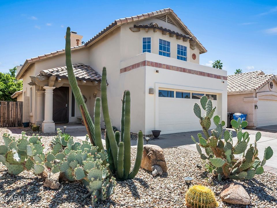 Beautifully updated 3 bed, 2.5 bath home in a vibrant North Phoenix neighborhood! This turn-key property features a fully remodeled kitchen with modern appliances and ample counter space, elegant hardwood flooring, fresh paint, and soaring ceilings. Enjoy the dual-sided fireplace separating cozy living and family rooms. All bedrooms are upstairs with vaulted ceilings, including a spacious primary suite with walk-in closet and dual-sink bath. Recent upgrades include new upstairs flooring, and recent roof, and water heater. Relax or entertain in the shaded backyard with a tranquil water feature. Prime location near parks, top schools, dining, and shopping. NO HOA! Owner is related to agent.