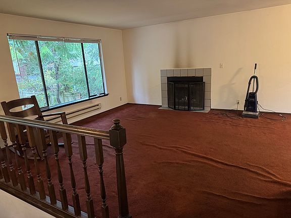 Upper: LR with fireplace, formal dining room, large kitchen, a sliding door to the deck, 3 br, 1.75 baths. Master br has its own bath.