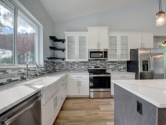 ANNUAL RENTAL- Gorgeous 3 bedrooms plus Den on this sprawling acre estate with huge pool deck perfect for spending the hot summer days and entertaining family and friends, You will be amazed at the open floor plan, wood like tile, massive kitchen with farm sink, tall cabinets, granite counters, and large island. Enter the Owner's suite through the barn doors feast your eyes on the luxurious bath, which features a stand alone tub and lots of cabinets. For added convenience and security impact windows and doors! But that's not all....wait till you see the paradise backyard. Massive deck, heated pool, and two pergolas! Courtesy of The Keyes Company Ref # 10849196