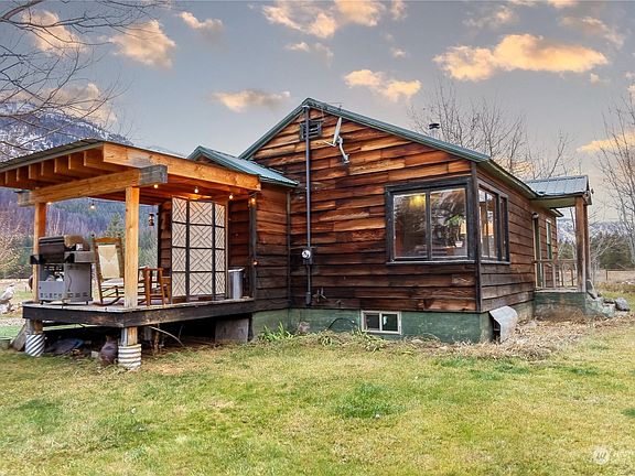 MAZAMA: Country home on 2.65 acres on the ski trail. Older small home with many artistic details and upgrades.; includes 2 bedrooms, 1 bathroom, living room with wood stove, kitchen with french doors out to deck, mudroom and full partially finished basement. Landscaped yard, fenced gardens, carport/wood shed, custom sauna, deluxe hand built log, heated workshop, plus additional outbuilding with carport and small barn. Year-round recreation out the door, enjoy the benefit of the groomed ski trail out the door, views of Sandy Butte, Last Chance and the famous Goat Wall and Goat Peak. Includes irrigation and individual well and septic. A beautiful piece of Mazama history.