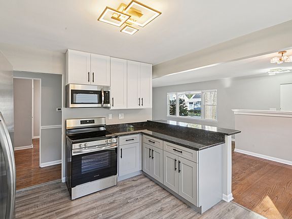 All that's left to do is move in and enjoy this beautifully renovated home with a newly installed roof! Step into the stunning kitchen, complete with brand-new stainless steel appliances, granite countertops, and modern shaker-style cabinets. The gleaming hardwood floors on the main level add warmth and charm throughout. You'll find two full bathrooms and a convenient powder room, all featuring sleek vanities, stylish light fixtures, and one beautifully tiled shower surround. The spacious finished basement offers endless possibilities, with a dedicated office, recreation room, laundry area, utility room, and plenty of storage space to keep everything organized. All new electric service inside and outside! Located just a short walk from Lan-Oak Park, this charming home in a welcoming neighborhood is ready for you to make it your own!