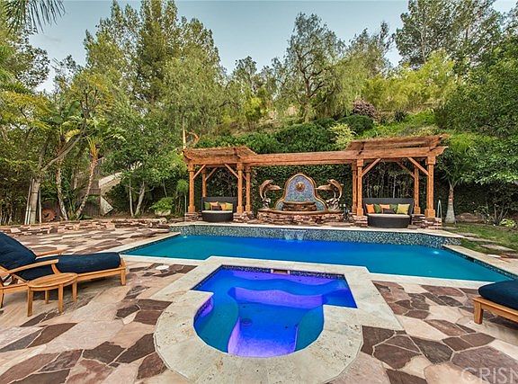 Semi custom estate on whisper quiet cul-de-sac in popular gated "Classics" neighborhood* Gorgeous curb appeal* Enter from the decorative double doors into the grand foyer with travertine floors* Step down living room with hardwood floors, soaring ceilings, fireplace & custom draperies* True formal dining room with French doors to the backyard* Granite kitchen with center island, custom wood cabinets, top of the line stainless steel appliances & overlooks the stunning entertainers backyard* Family room has high ceilings with wood beams, built-in entertainment system, fireplace, and a full wet bar including a wine fridge, granite counter & glass shelving* Next to the family room is a pool table room with built-in seating, floor to ceiling windows overlooking the backyard and French doors to the backyard* Completely separate bar room has French doors to the backward, custom shelving, designer cabinets with lighting, built-in sitting area, and a fireplace* All 5 fireplaces are specific and the focal point of each room, including one under the covered patio* Each bedroom is en suite* Master suite has sitting area, fireplace and balcony with private spa* Custom draperies, custom lighting, surround sound & natural lighting throughout* Resort style backyard exudes fun with sparkling pool and spa with water features, pergola, lush landscaping and trees for privacy and ambiance, indoor/outdoor covered patio with finished ceiling and fans, grass area and BBQ center* Low HOA is $105/mo**