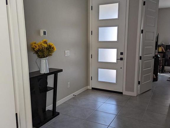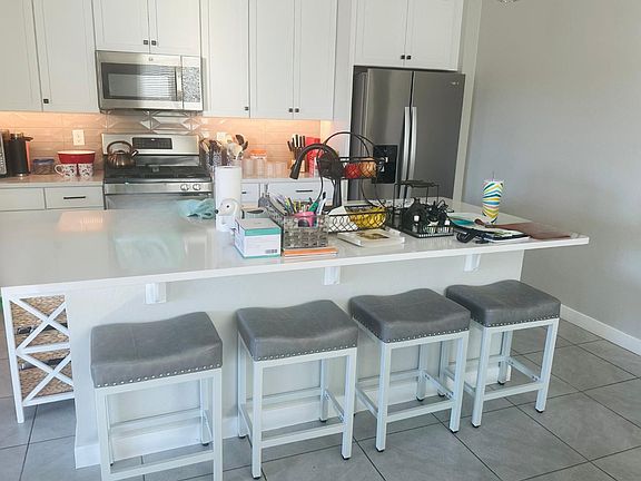 Home is three years old. In addition to the master, there is one other bedroom with its own bathroom. The house is situated with no neighbors to the rear and a park is nearby.