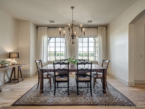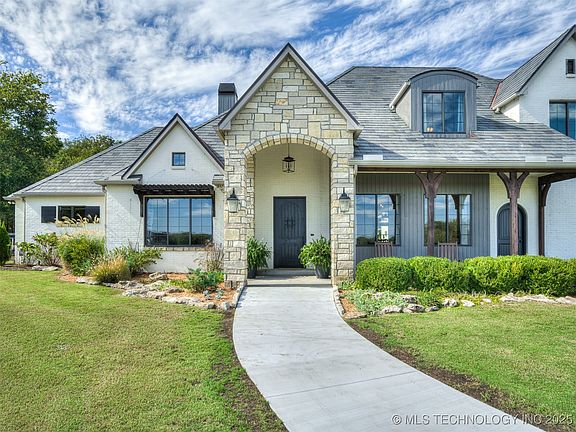 Experience the perfect blend of private country living and modern luxury in South Ranch, within the desirable Bixby School District. Set on 8 acres, this expansive estate offers open views in the front and wooded privacy in the back. The 5,655 SF home (per appraisal) features 6 bedrooms—each with its own private bath—plus 2 additional half baths.