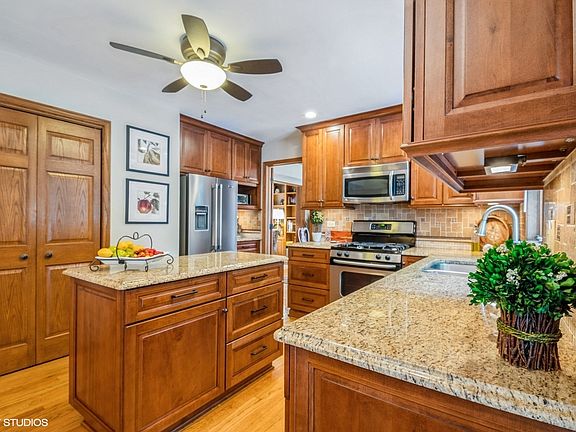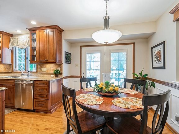 BRAND NEW ROOF! Beautiful!! 2 Story, Over 2700 Finished s.f., Possible 4 Bedroom Potential, 3 Baths, Finished Basement, 2 Car Attached Garage On Gorgeous Landscaped Corner Lot! Main level Kitchen with maple cabinets with cherry finish, island, granite counters, stainless steel appliances and Pantry. Dining room with hardwood floors. Living room/DEN with carpeting, bookshelves and coffered ceiling. Rec room with crown molding and fireplace. Upper level has primary bedroom, w/i closet and 3/4 bath. 2 Addition bedrooms. Attic room, potential 4th bed, (EASY TO FINISH) Oak doors and trim throughout. Basement with rec room, wet bar, pool table and exercise equipment (all stays), and laundry. Backyard has 20x20 deck and shed. 13 Month HWA Home Warranty offered! Some Furniture Available for Sale!