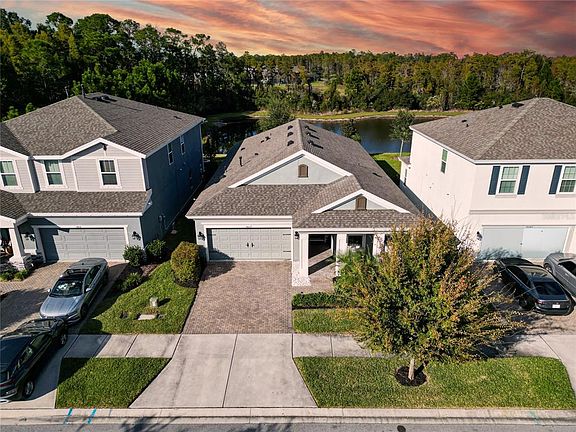 Enjoy Pond / Conservation views in this exceptional Homes by WestBay (Sandpiper) residence in the sought-after community of Bexley, where sophisticated design meets effortless Florida living. This thoughtfully crafted home showcases a modern open-concept layout with elegant tile flooring in the main living areas and soft carpeted bedrooms for comfort and warmth. The gourmet kitchen takes center stage, boasting quartz countertops, white shaker cabinetry, stainless steel appliances, walk-in pantry, and a natural gas cooktop - all seamlessly connected to the spacious great room and dining area. Stylish board-and-batten wainscoting and shiplap accents add a custom designer touch, elevating the home’s aesthetic beyond standard builder finishes. From the great room, enjoy breathtaking conservation and pond views framed by wide sliding glass doors that flood the interior with natural light and create a seamless transition to the covered lanai — the perfect setting for morning coffee or sunset gatherings. The primary suite offers a peaceful retreat with dual walk-in closets and a spa-inspired ensuite bath featuring quartz counters and timeless finishes. Set on a premium conservation lot, this home provides tranquility and privacy while being steps away from Bexley’s resort-style amenities, including two community pools, a state-of-the-art fitness center, clubhouse café, dog parks, miles of scenic trails, bike paths, sports fields, and the renowned Twisted Sprocket Café. Conveniently located near the Veterans Expressway, residents enjoy easy access to Tampa International Airport, top-rated schools, and an abundance of dining and entertainment options. This is more than a home - it’s a lifestyle defined by luxury, comfort, and connection to nature in one of Tampa Bay’s premier master-planned communities.