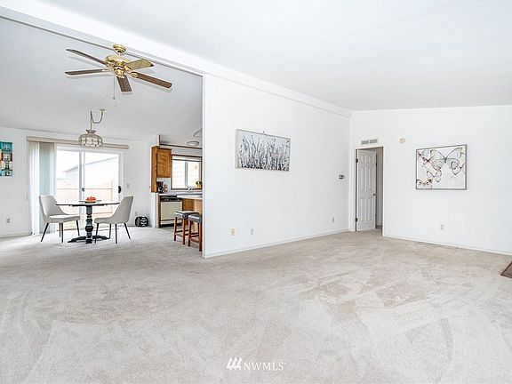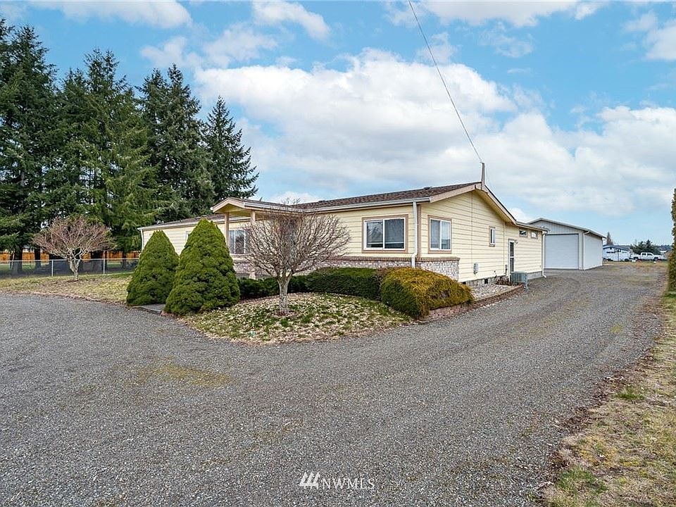 This beautiful home on nearly an acre of property is fenced on 3 sides and with a circular driveway in front. The 3-bedroom/2 bath home features large, light-filled rooms and split bedroom plan. Formal living room and dining area lead to kitchen with skylight, plenty of cabinets and a bar for casual dining. Spacious family room w/a custom built-in desk plus plenty of room for seating. Primary suite features a 5-piece bath and large walk-in closet. In addition to the oversized 2-car attached garage, this property has a 1728 sq ft SHOP that is fully wired with 220, has 3 huge doors to park your RV or boat, plus room for all kinds of other activities. You can own a little bit of country comfort in this great location with view of Mt. Rainier