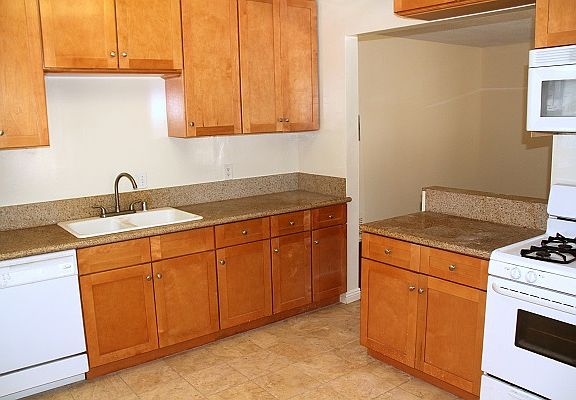 Beautiful 2 bedroom 1 bath house which recently received a major upgrade. It is located in an excellent area of North Redondo Beach. Some of the many upgrades the house received are in the large eat in kitchen, granite counters, travertine marble floors, sink, faucet, cabinets, hardware, and light fixtures. Bathroom got granite counters, travertine marble floors, tub, tub doors, sink, vanity, faucet, hardware and light fixtures. In the kitchen are a modern stove, dishwasher and built in microwave. House has a private fenced yard and a 1 car garage with lots of extra driveway parking. House has double paned vinyl windows. A professional gardener is included. There are a washer and dryer in the house. This house is the rear house of 2 houses on a large lot and is completely separated from the front house. Each house has its own driveway, garage, and fenced yard.