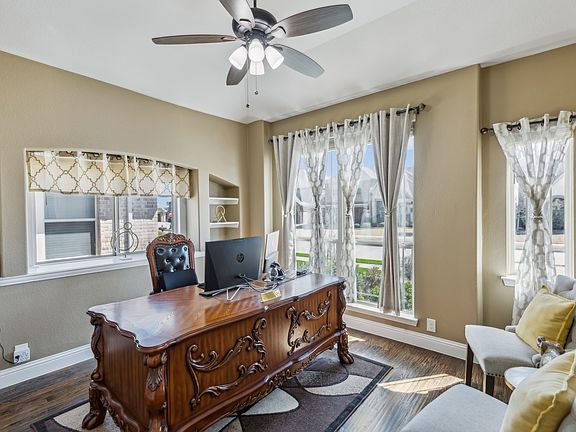 Forney Living at Its Finest! Enter this breathtaking 6-bedroom, 4.5-bath estate and experience modern elegance at every turn. The grand foyer welcomes you with soaring ceilings and an abundance of natural light, setting the stage for this exceptional home. At the heart of the home, the inviting living room features a stunning custom beamed ceiling and a stately stone fireplace, perfect for cozy gatherings. The enviable eat-in kitchen is a chef’s dream, boasting a large island with seating, built-in stainless steel appliances, granite countertops, ample storage, and a bright breakfast nook. A formal dining room offers the perfect space for intimate dinners. The downstairs primary suite is a true retreat, featuring a spacious sitting area and a spa-like ensuite with separate vanities, a soaking tub, a walk-in shower, and a generous walk-in closet. Upstairs, you'll find expansive secondary bedrooms, a bonus family room, and an impressive media room—ideal for entertaining or relaxing. Enjoy outdoor living in the private backyard with a covered patio, perfect for unwinding or hosting guests. Situated in a prime Forney location, this home offers easy access to top community amenities. Don't miss the opportunity to make this stunning estate yours! 3D tour available online!