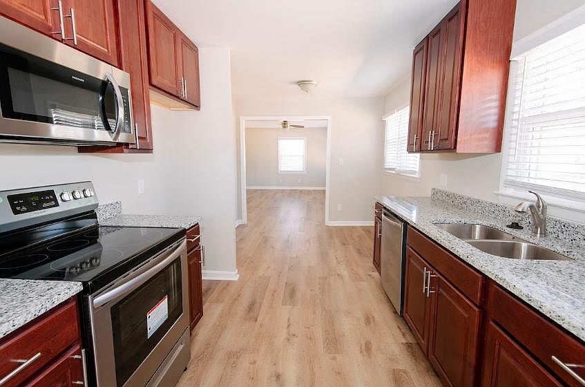 LOCATION! LOCATION! LOCATION! Minutes from Downtown Raleigh, I40, and HWY 70! This home features fresh paint and brand new laminate hardwood flooring throughout! Granite countertops and stainless steel appliances in the open kitchen. New dual vanity and new tile surround shower/bathtub in the bathroom. Nice, Large fenced backyard. Don't miss out on this gem! Not to mention, washer + dryer included! Offered by Acorn + Oak Property Management. Tenant is responsible for utilities and yard maintenance. 650+ credit requirement + monthly income must be 3x monthly rent. Pets allowed with approval and deposit.