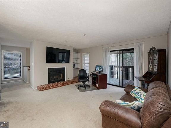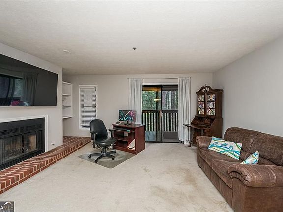Amazing Financing that offers 0 down and money towards closing costs! How could you pass this up and in this location! Nestled in this serene hideaway right in the middle of all the action especially with The Battery and Truist Park being minutes away! The wooded view from the balcony is a refreshing green backdrop to a quiet, yet active community. Two dog parks, two swimming pools, tennis and pickleball courts situated in a beautifully landscaped complex. This well maintained end unit features a wonderful open floorplan. Family room with fireplace with doors out to a large deck overlooking the woods, master with walk in closet plus an additional closet, extra windows for a lot of natural sunlight, updated bathroom, walk in shower, toilet with remote control bidet seat, newer washer and dryer, large television in family room also included. This is truly a one of a kind end unit that exudes privacy in the heart of Smyrna, yet close to shopping, entertainment, I-285 and I-75!