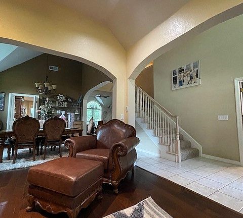 to ceiling Austin stone fireplace with gas starter and built-in cabinetry. Vaulted ceilings throughout downstairs gives a grand feel. Heated pool with water fall and spa. A well-equipped Cabana makes outdoor entertainment and