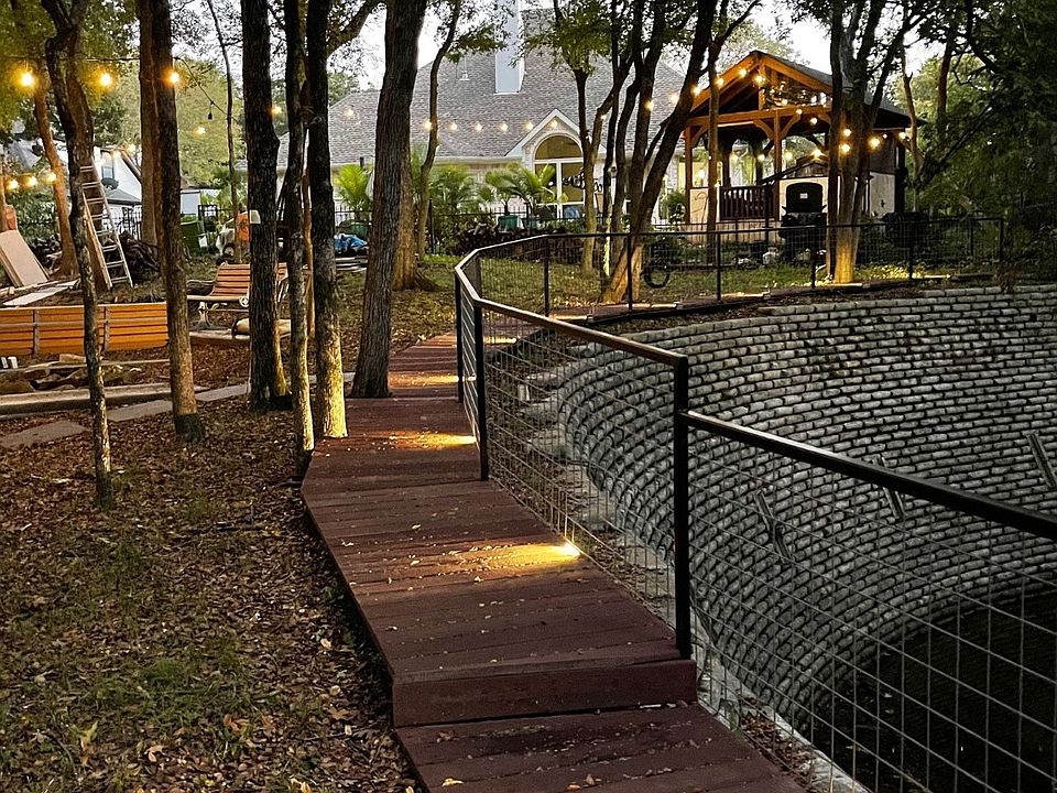 and boardwalk lighting make a magical path to your park-like fire pit site. You won't find all of these