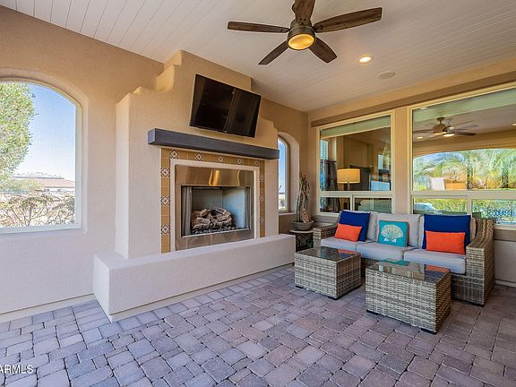 Situated on a spacious corner homesite you'll love every detail of this Nice plan at Encanterra. Enjoy the sunrises off your back patio with a huge rolling wall of glass, gas fireplace and tons of privacy. Expanded stone pavers create a perfect outdoor retreat. Inside you'll find a chef's kitchen with built-in JennAir appliances, gas cook top, warming drawer and beverage center. Upgraded maple cabinets, sleek stone work and quartz countertops pull it all together. Throughout the home you'll find tile flooring and both bathrooms have tile showers and granite countertops. The oversized laundry room is ideal for a home office space. Tons of cabinets and laundry sink too. The PRE-PAID Solar lease gives you top of the line energy efficiency. Start living the good life today at Encanterra